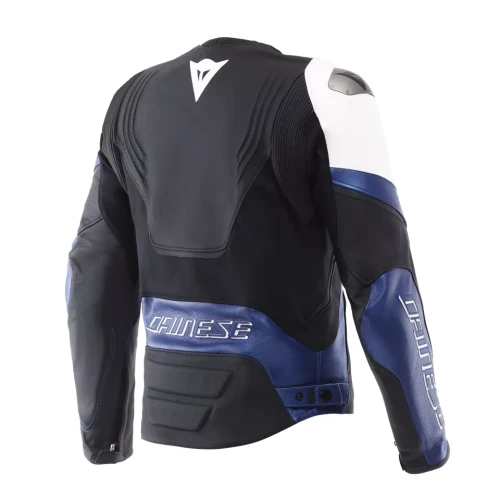 Den nyeste utviklingen av den bestselgende Dainese Racing-jakken, utviklet for alle motorsykkelførere som reiser i godt vær og om sommeren, er Racing 5 Leather Jacket. Den har en normal og sporty passform laget av fint 1,2 mm Tutu-kuskinn. Fokus på ergonomi har ført til studier av kjørestillinger for å perfeksjonere detaljer som er utformet for å redusere trykket på nakken, som for eksempel Veloce Racing-halskragen, og for å garantere maksimal komfort og mobilitet ved å integrere bredt S1 bi-elastisk stoff samt justeringssystemer på hoftene. Kjørekomfort kombineres med overlegen beskyttelse. Med EN 17092 klasse AA-sertifisering har Racing 5-jakken komposittbeskyttere sertifisert i henhold til CE nivå 2-standarden på albuer og skuldre, samt utskiftbare aluminiumsinnsatser på skuldrene som sikrer en mer naturlig glidebevegelse ved fall, og en lomme designet for å romme rygg- og brystbeskyttere av type G. Som et resultat av studier av riktig passform kan jakken komfortabelt bæres over Dainese Smart Air airbag-enheten uten behov for å kjøpe en større størrelse. Ermenes passende passform hindrer at beskytterne flytter seg til feil sted under et fall, og sikrer dermed alltid maksimal beskyttelse for syklistene. I tillegg lar løkkene som fester Smart Air til jakken syklistene ta dem på og av med én bevegelse, slik at airbagen alltid holder riktig posisjon under jakken. Funksjonaliteten til dette plagget i alle værforhold forbedres av en praktisk innvendig vanntett lomme der syklistene kan oppbevare sine elektroniske enheter i tilfelle dårlig vær, samt luftventiler på brystet og glidelåser for luftuttrekk på sidene ved økter i høye temperaturer.