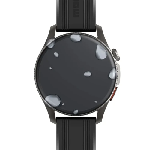 Klokken er sertifisert med IP67, hvilket betyr at den tåler støv og sprutvann – den er dermed godt egnet for hverdagsbruk og moderate treningsaktiviteter.