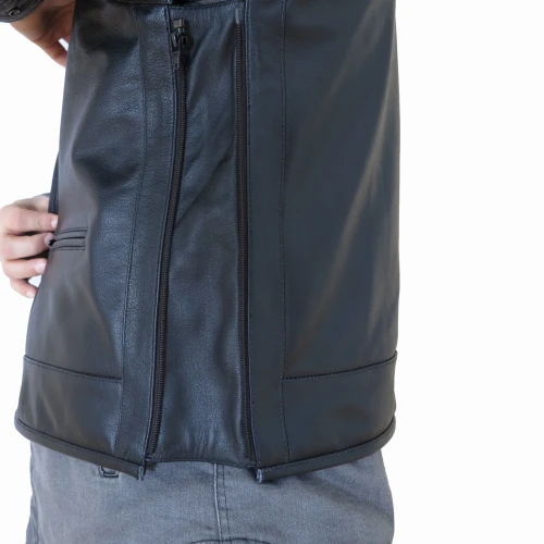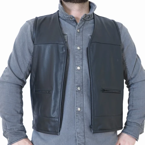 Med hel rygg, justerbar i størrelsen og 100% kuskinn er dette er råtass av en skinnvest