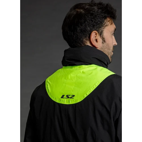 Lang hals for effektiv vindtetting og en sammenleggbar regnhette.
