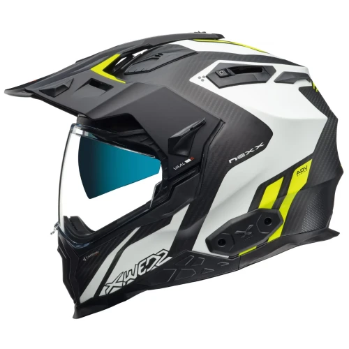Nexx X.WED 2 er kanskje verdens mest inovative Adventurehjelm. Hjelmen har mange finurlige løsninger som gjør at den kan tilpasses til mange slags bruk. Har vunnet flere tester bl.a i Britiske Ride Magazine. Integrert solvisir. Fester til action-kamera følger med. Intercom (Nexx X-Com) kan integreres i hjelmen med betjeningspanel i ytterskallet. Kan brukes uten skygge (som helhjelm), uten visir (som crosshjelm) eller som endurohjelm (med skygge, solvisir og yttervisir) Pinlock er standard. Veldig godt sidesyn. Skyggen kan forlenges. Ventilasjonen foran haken kan byttes til cross-ventilasjon for enda bedre ventilasjon.