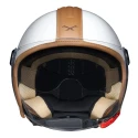 Lett og trendy halvhjelm. Hjelmen er kompakt i ytre mål slik at den enkelt kan plasseres i vesker eller under setet. Det lange visiret kan tas av slik at hjemen kan brukes kun med solvisiret.