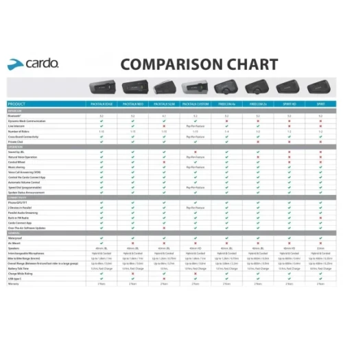 Markedets beste kommunikasjonssett. Dette er settet som har alt! DMC (Mesh), naturlig stemme- styring og med blåtann 5.2 fra Cardo. Praktisk magnetfeste (AirMount) til braketten som gjør det svært enkelt og praktisk å ta av og på enheten. For 1-15 personer på opptil 8km mellom første og siste fører i gruppen (DMC). Fører/fører eller fører/passasjer. 40mm JBL høyttalere for topp lydkvalitet. Opp til 13t tale og hurtiglading. Vann- tett. Kan brukes mot alle andre merker blåtann, telefoner, GPSer og TFT. Musikkdeling, VOX (voice operating) og kan styres via Cardo sin app. Naturlig stemmestyring, Live intercom og kontroll- hjul for lettere betjening. Mulighet for private chat. OTA oppdatering.